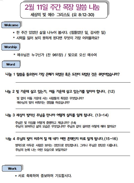 2024년 2월 18일 주간 목장나눔지