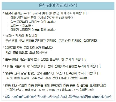 2025년 11월 9일 교회소식